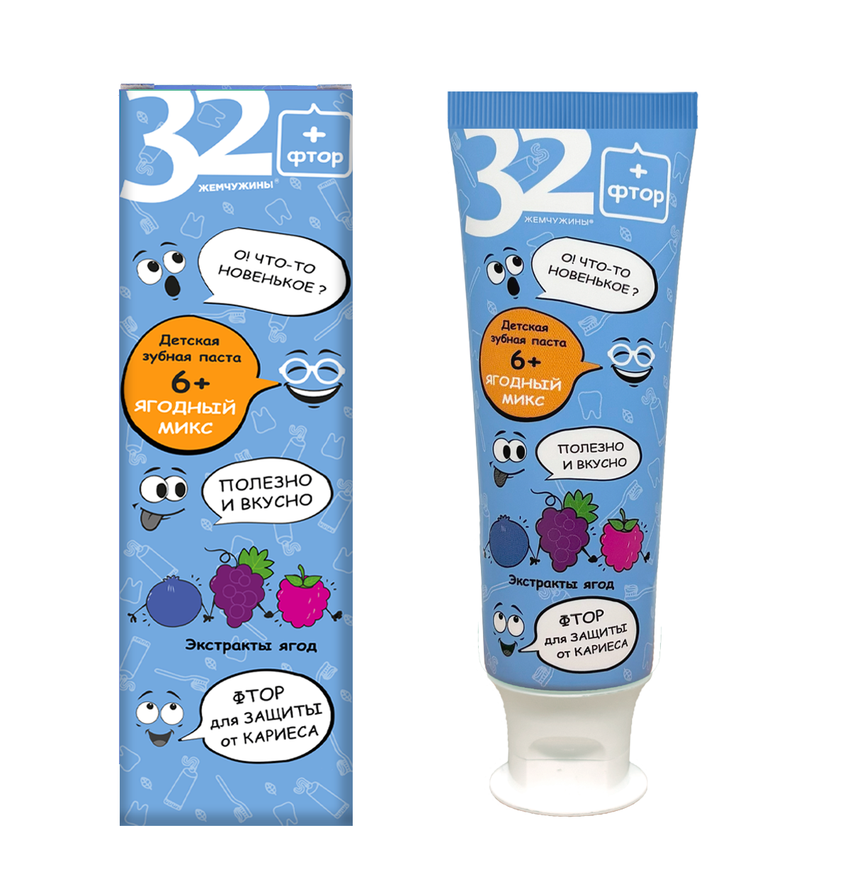 • Паста зубная детская 32 ЖЕМЧУЖИНЫ 6+ Ягодный микс, 75г